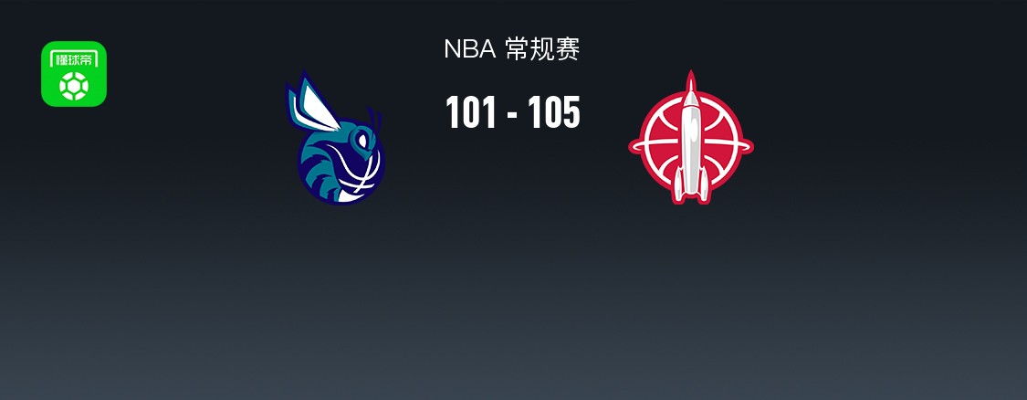第四节黄蜂格兰特-威廉姆斯拿下6分,火箭杜兰特拿下10分,最终黄蜂101-105不敌火箭