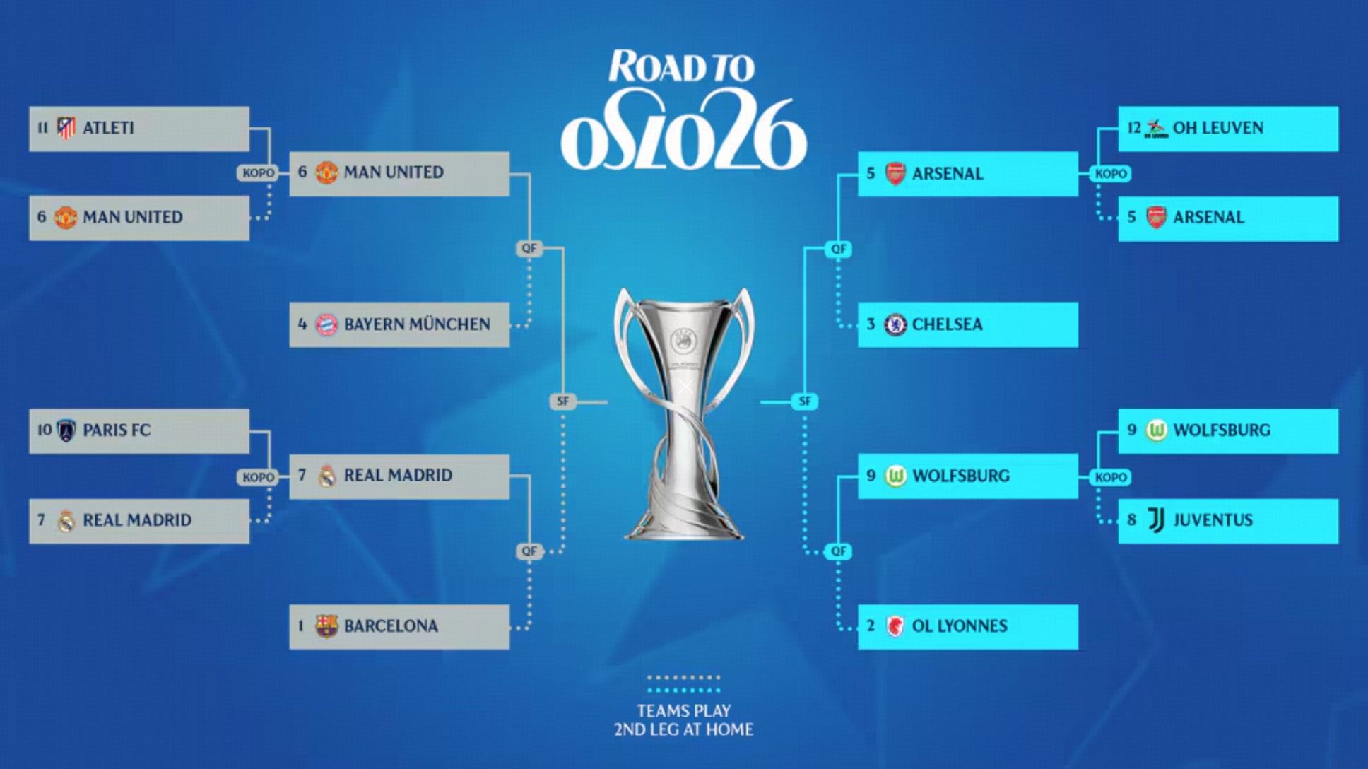 女足欧冠1/4决赛对阵