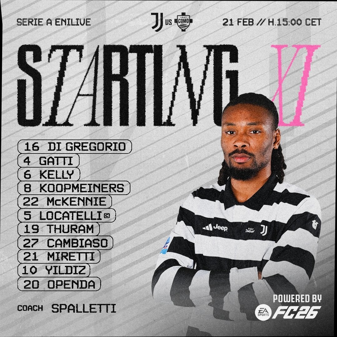 北京时间2月21日22:00,意甲第26轮继续进行,尤文图斯坐镇主场迎战科莫。赛前双方首发阵容陆续公布: