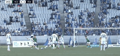 第90+6分钟,绝平!吉田泰授接队友传中头球破门,东京绿茵扳平2-2比分