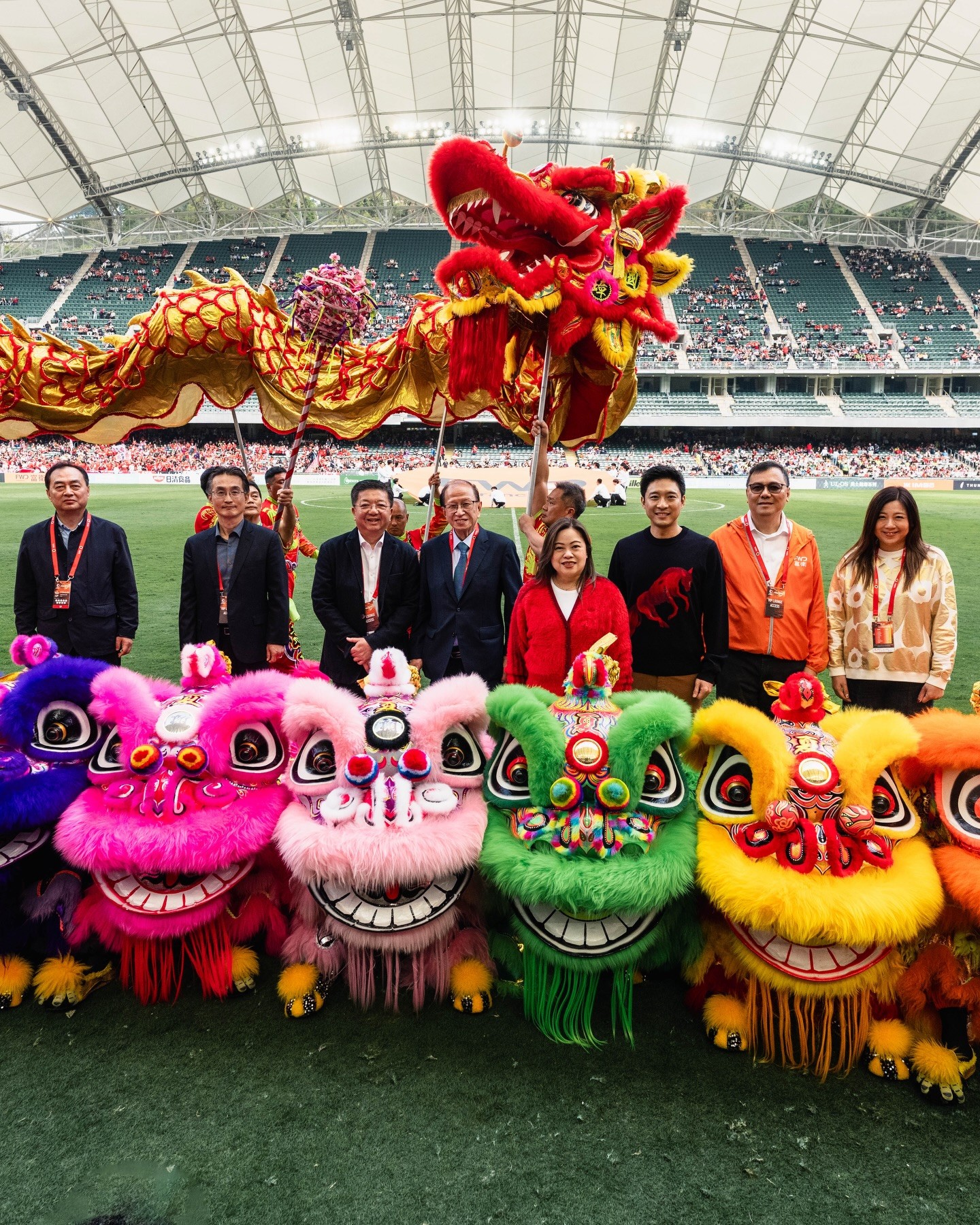 本场比赛在农历新年初五举行,现场还举行了舞狮表演。