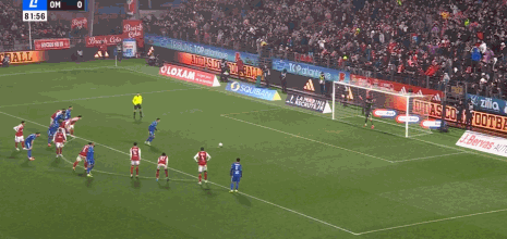 第10分钟,马涅蒂左路传中稍有变线,阿若克头槌破门,马赛0-1