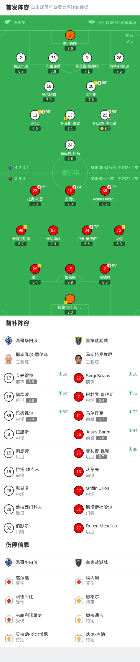 北京时间2月22日美国职业大联盟 常规赛,温哥华白浪主场对阵皇家盐湖城。温哥华白浪阿泽尔-杰克逊破门。最终比分温哥华白浪 1–0 皇家盐湖城。 点击查看本场比赛详细数据>> 点击查看美职联完整积分榜>> 精彩瞬间 第57分钟,温哥华白浪球员阿泽尔-杰克逊打入一球。 球队阵容 技术统计 文章导航 过去一年生活里最有成就感的事?王哲林:玩使命召唤连续吃鸡 NBA战报:鹈鹕126-111 76人,马克西27分