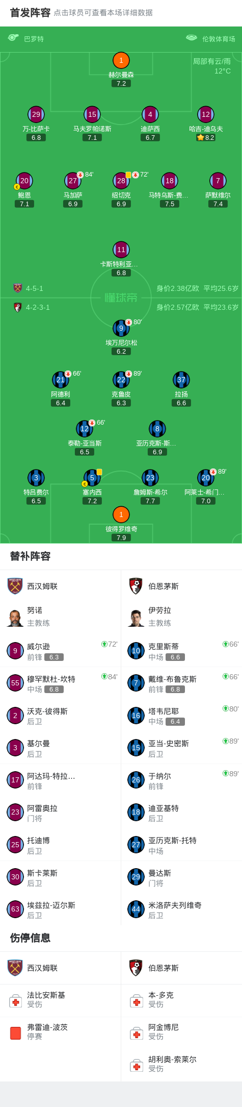 北京时间2月22日英格兰足球顶级联赛 联赛 第27轮,西汉姆联主场对阵伯恩茅斯。最终比分西汉姆联 0–0 伯恩茅斯。
