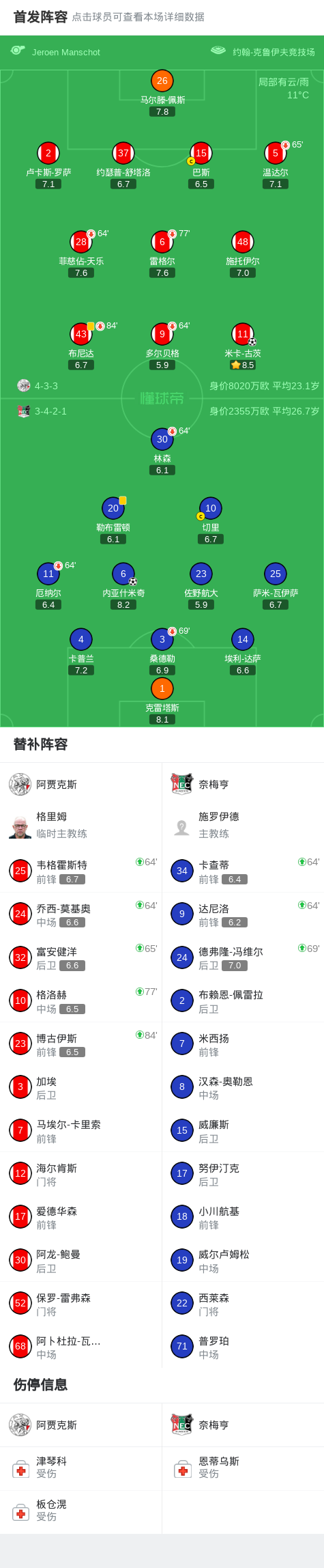 阿贾克斯1-1奈梅亨,米卡-古茨首开记录,内亚什米奇扳平