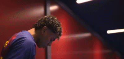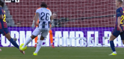 第46分钟,下半场比赛开始之前,巴萨球员换回英文球衣