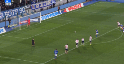第83分钟,帕尼切利点射破门,斯特拉斯堡3-1里昂