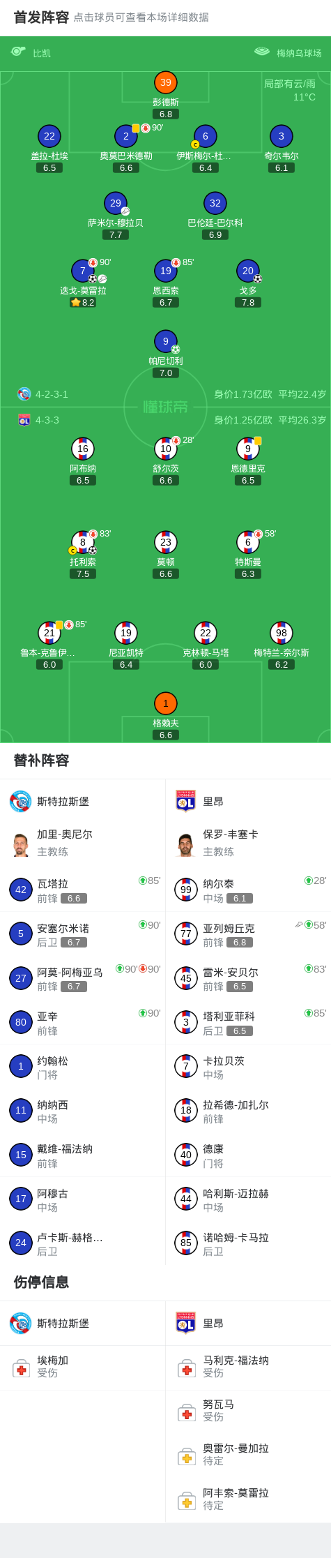 第52分钟,莫雷拉远射变线破门,斯特拉斯堡2-0里昂