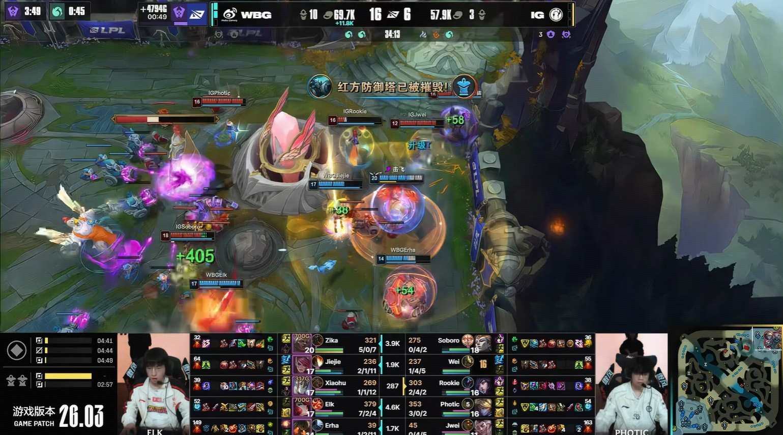 第一局iG选出上单维鲁斯,第21分钟砍下四杀。局势有来有回的情况下,第43分钟,WBG开大龙,iG决策完全昏头,WBG先下一局。