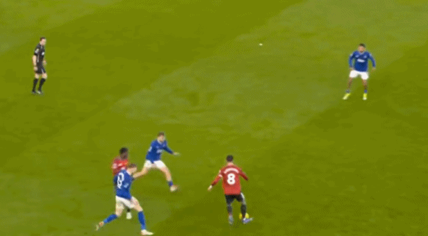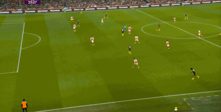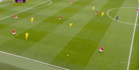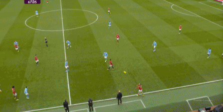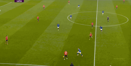 在没有固定且典型的中锋角色的情况下,曼联实际上是在用跑动牵制对手,从而绕进两线之间: