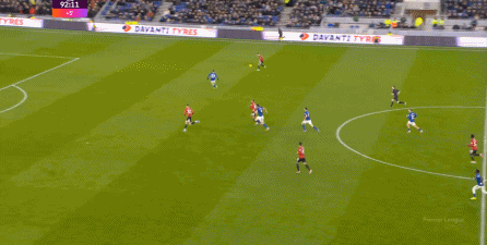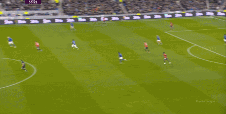 本场比赛的他,的确出现了很多问题,但在两线之间出现问题的球员,远不止布鲁诺自己,而这个时候,你就要看到埃弗顿这个对手的特殊之处,因为在中场区域,莫耶斯直接摆出了格耶和伊洛布格南两名黑人后腰。