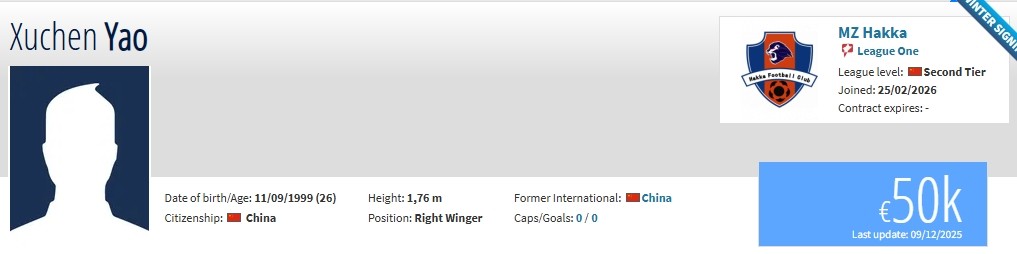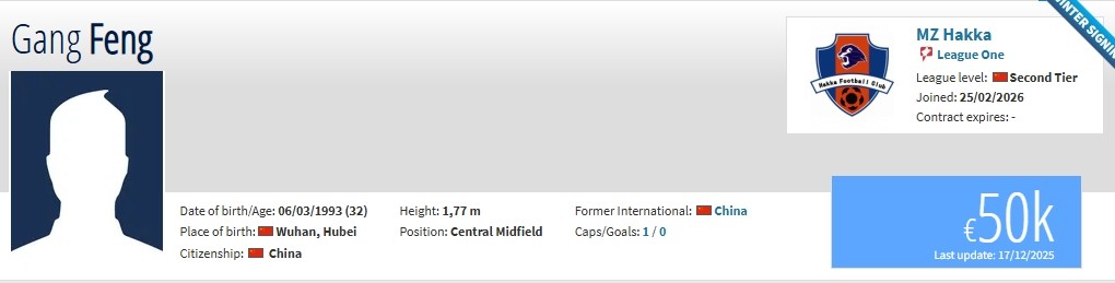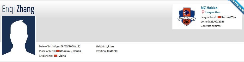 北京时间2月25日,德转更新,冯刚、么旭辰、张恩祈加盟俱乐部,三名球员都为自由转会。