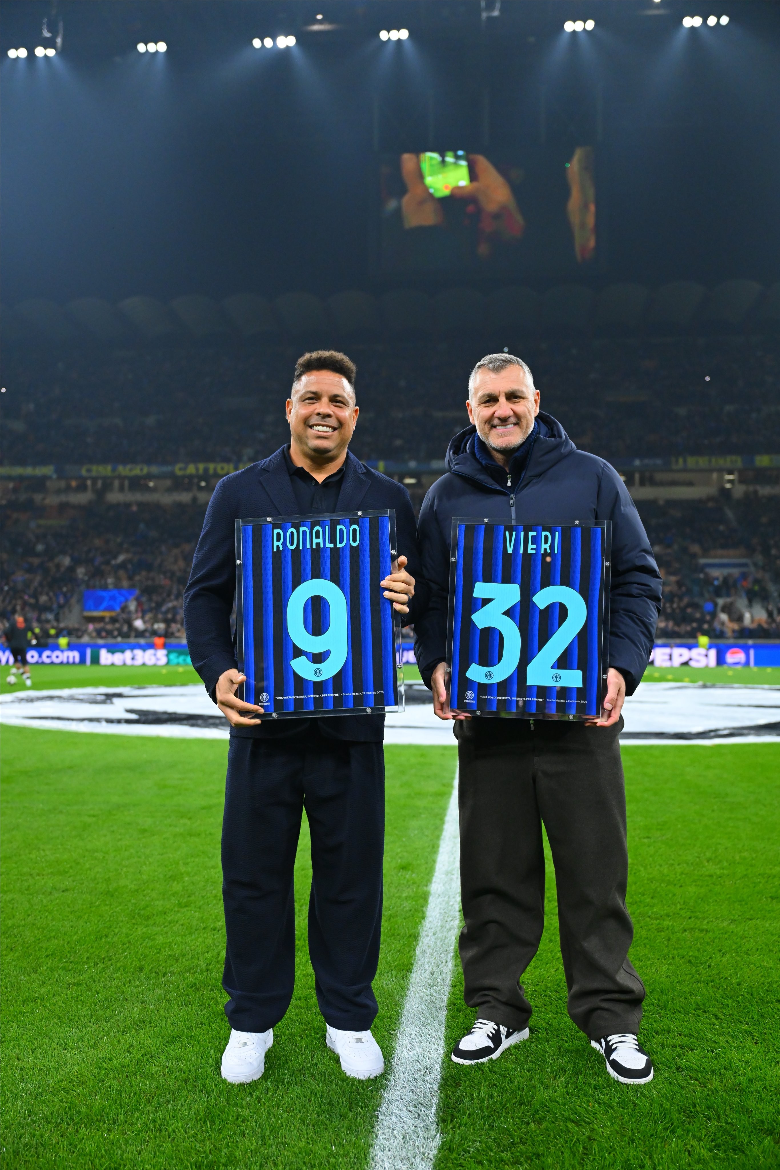 罗纳尔多曾在1997年至2002年期间效力于国米,维埃里则是在1999年至2005年期间身披蓝黑军团战袍。