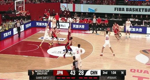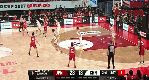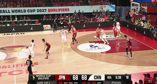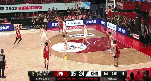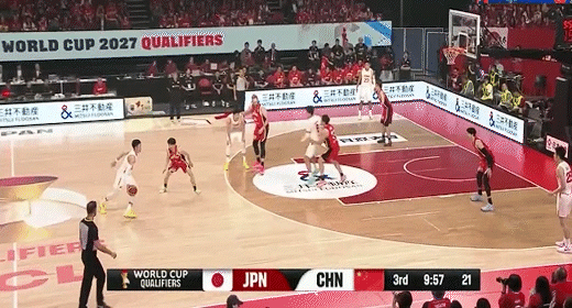 渡边雄太单打张镇麟虚晃转身中投打板命中!中国男篮24-37日本