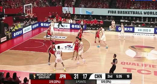 日本男篮连续前场板二次进攻得分!中国男篮15-27日本