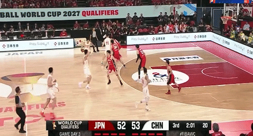 紧跟赵继伟再中三分!中国男篮56-52日本