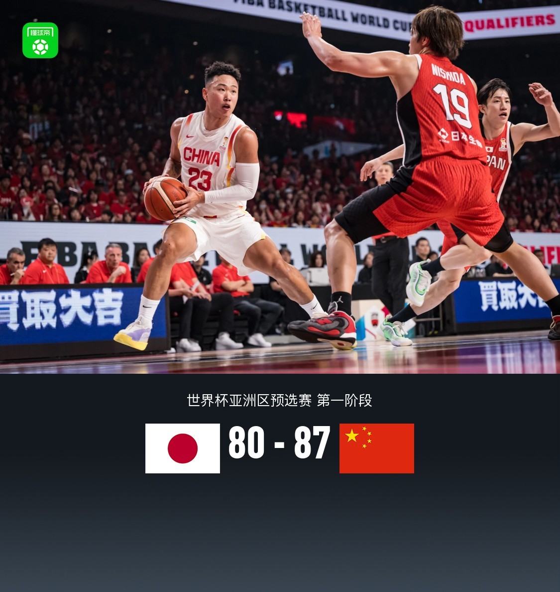 第四节日本男篮亚历克斯-柯克拿下7分,中国男篮赵继伟拿下8分,最终日本男篮80-87不敌中国男篮