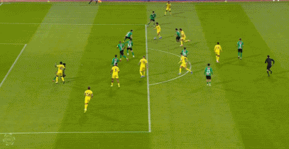 第16分钟,西马坎近距离头槌,皮球高出横梁