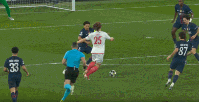 第66分钟,阿什拉夫远射被扑,克瓦拉茨赫利亚跟进补射破门,巴黎2-1!总比分5-3!