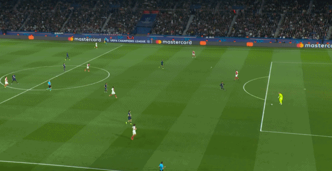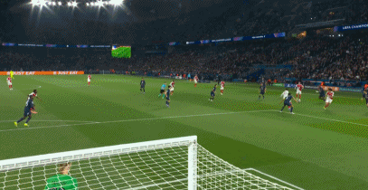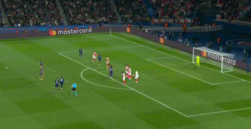 第17分钟,巴黎反击,杜埃传中被门将没收