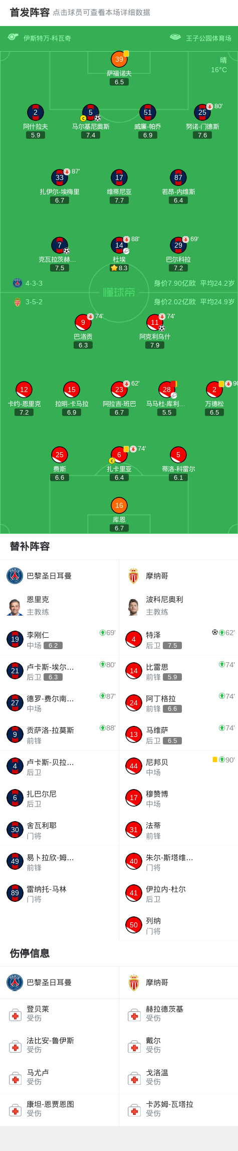 第58分钟,马马杜-库利巴利三分钟连吃两张黄牌被罚下,摩纳哥少一人作战