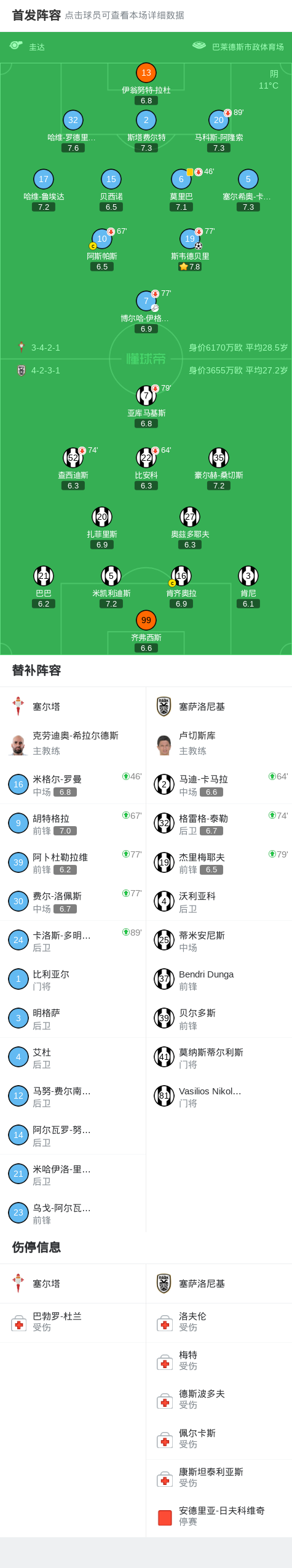 第63分钟,塞尔塔球员博尔哈-伊格莱西亚斯助攻斯韦德贝里打入一球。