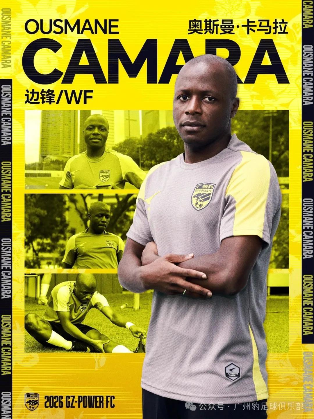 经与球员本人协商并达成一致,几内亚现役国脚奥斯曼-卡马拉(Ousmane Camara,粤语译名:卡马拉)正式加盟广州豹足球俱乐部。