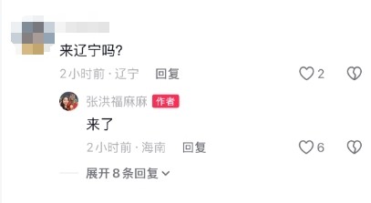 有球迷在张洪福母亲的抖音评论区留言:来辽宁吗?随后张洪福母亲回复:来了。