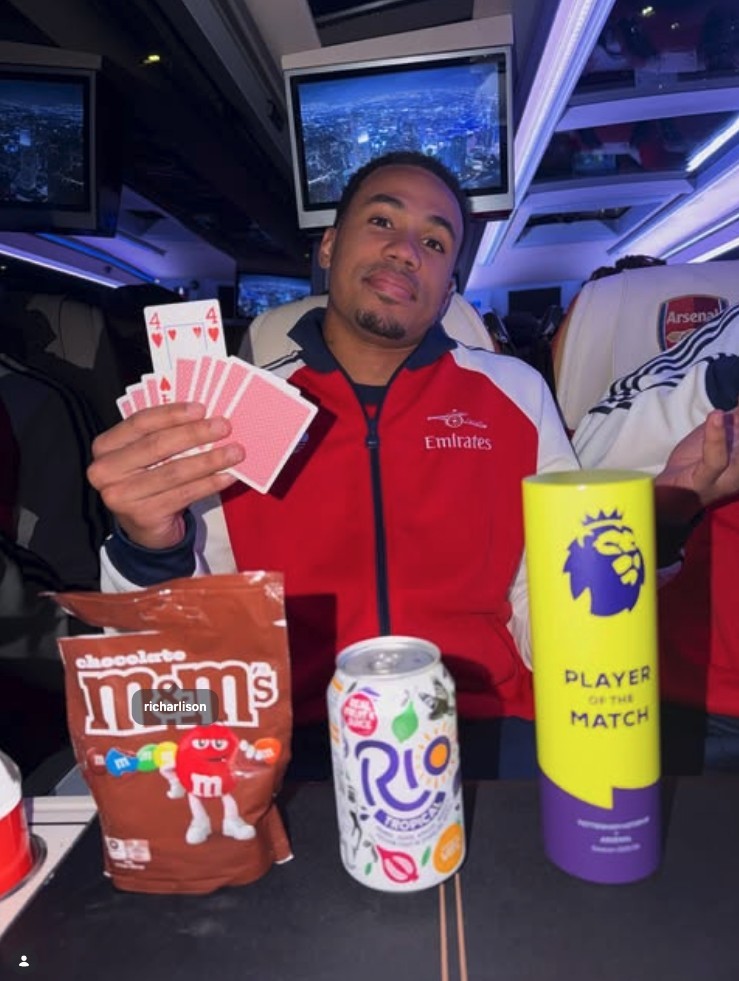 赛后加布里埃尔做了什么?是A:低调行事,暗自庆幸?还是B:在社交媒体发布自己手持扑克牌的照片,亮出红桃4,寓意球队4球大胜,甚至@了热刺前锋理查利松?