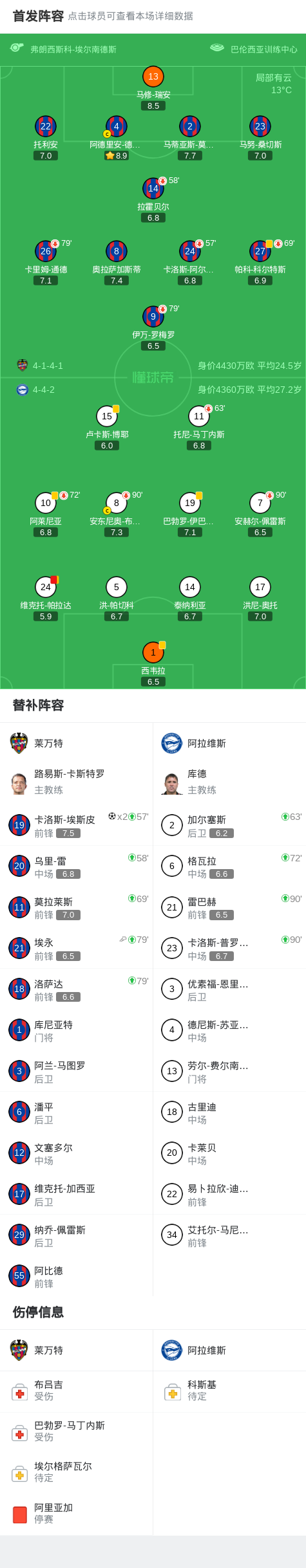 北京时间2月28日西班牙足球甲级联赛 联赛 第26轮,莱万特主场对阵阿拉维斯。莱万特卡洛斯-埃斯皮梅开二度。最终比分莱万特 2–0 阿拉维斯。