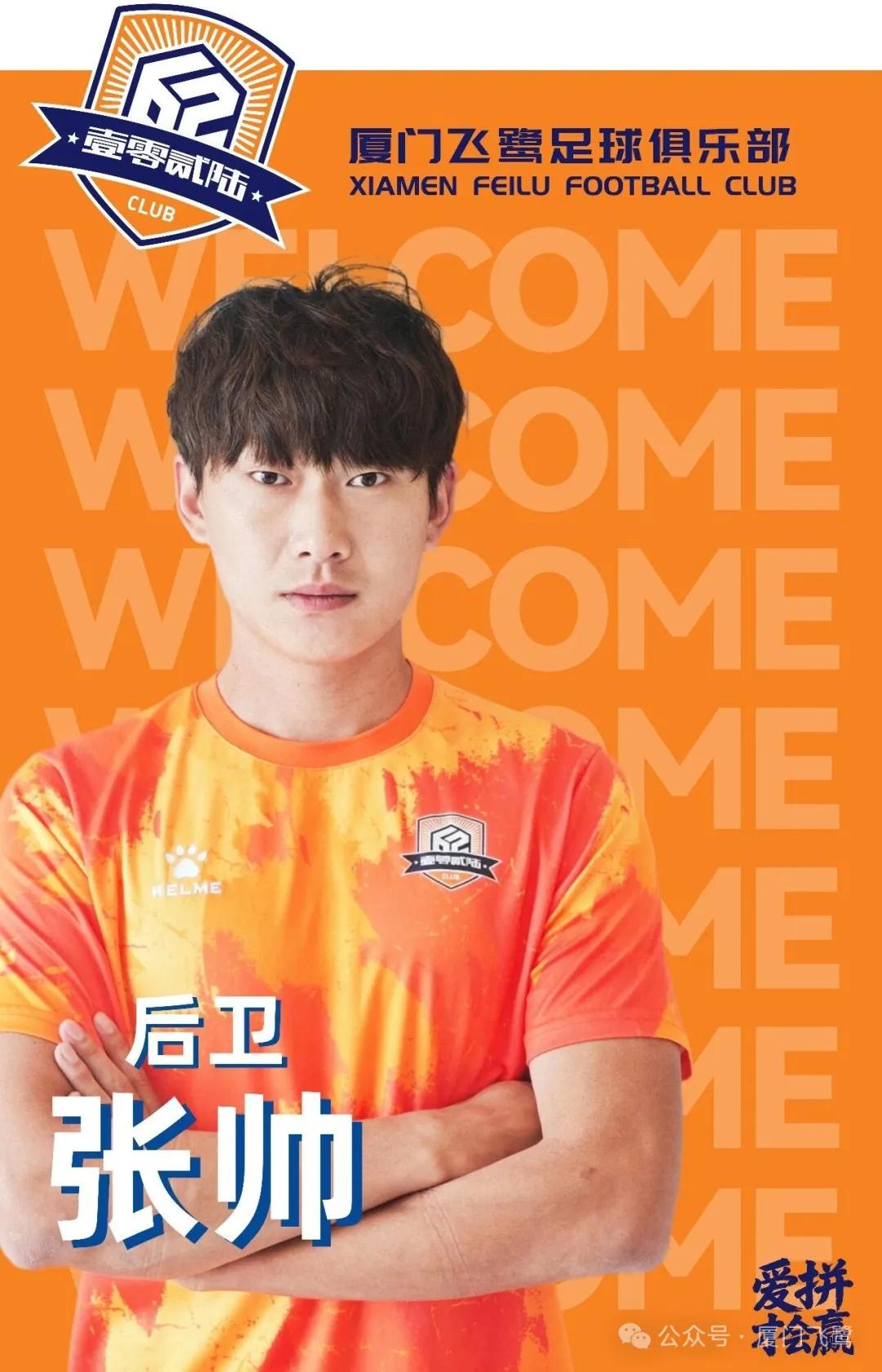 欢迎张帅加盟厦门飞鹭足球俱乐部,期待他镇守防线,为球队筑起坚实屏障。