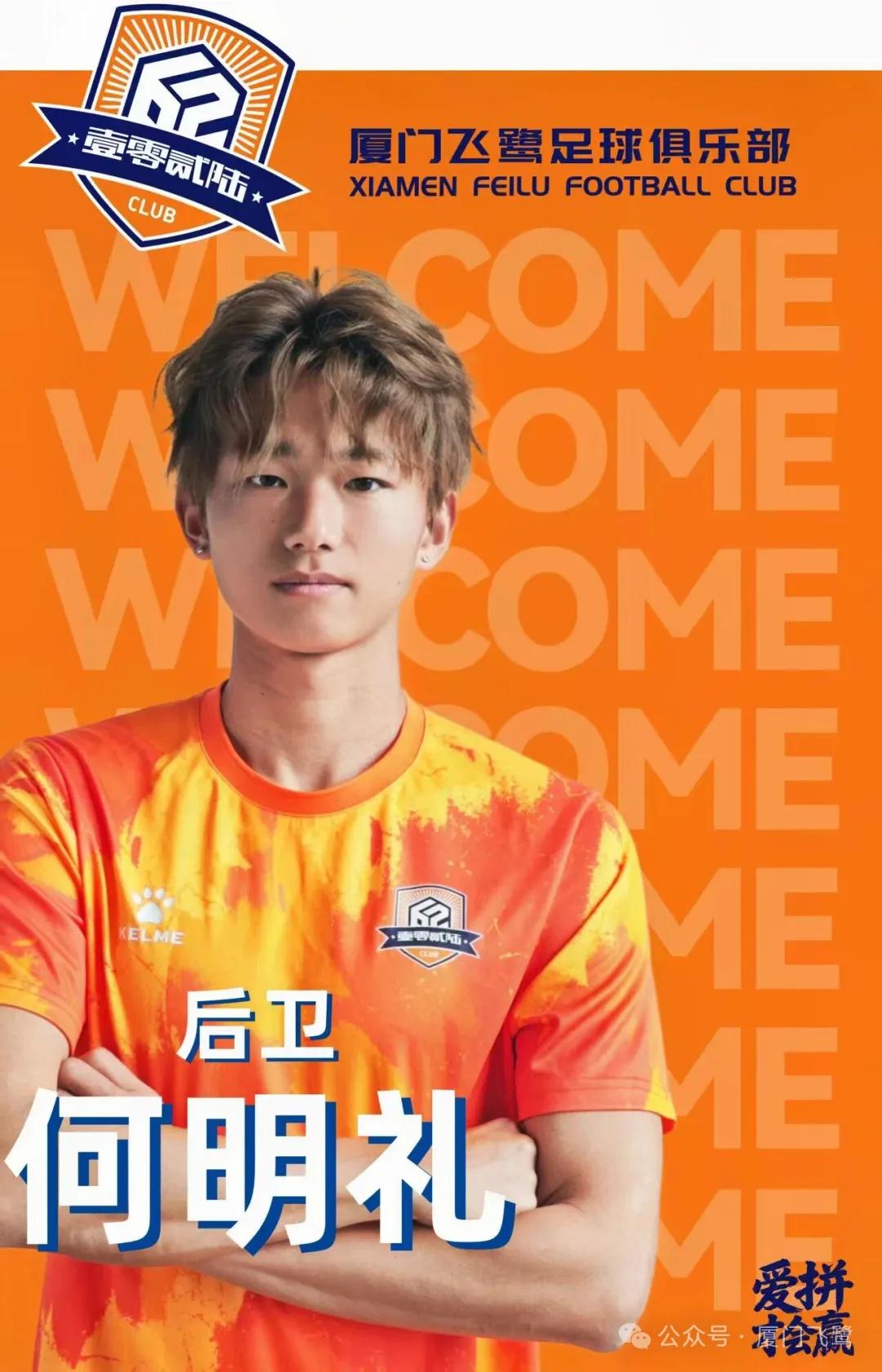 欢迎何明礼加盟厦门飞鹭足球俱乐部,期待他在新赛季快速成长,为球队贡献自己的力量。
