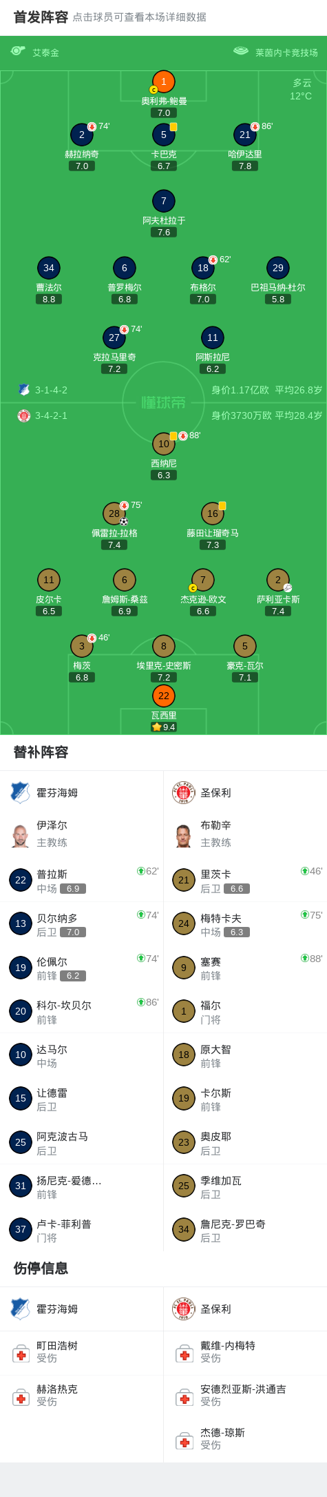 北京时间2月28日德国足球顶级联赛 联赛 第24轮,霍芬海姆主场对阵圣保利。圣保利佩雷拉-拉格破门。最终比分霍芬海姆 0–1 圣保利。
