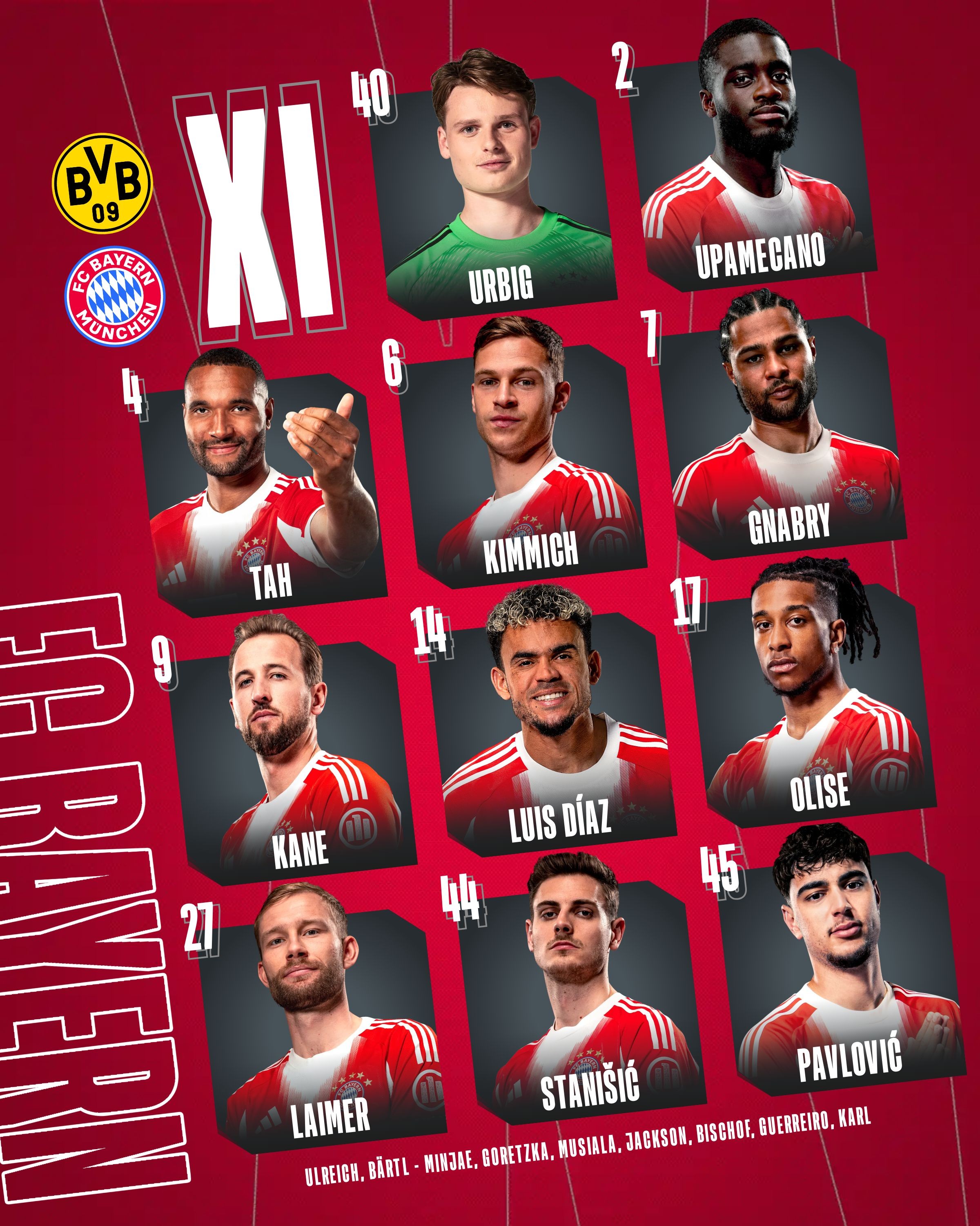 北京时间3月1日1:30,德甲第24轮迎来德国国家德比,多特蒙德坐镇西格纳-伊杜纳公园球场迎战拜仁慕尼黑,本场主裁判为雅布隆斯基,赛前双方首发出炉。