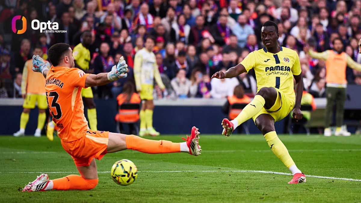 此役主场对阵比利亚雷亚尔,霍安-加西亚把守的巴萨球门在比赛第49分钟被帕普-盖伊攻破。