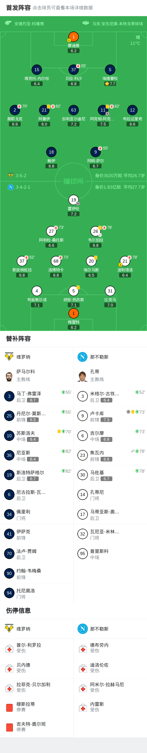 第63分钟,阿克普罗凌空抽射,皮球直挂死角,维罗纳1-1那不勒斯