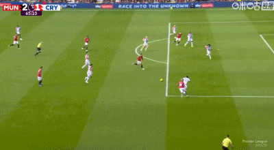B费45度传中,谢什科头球破门,曼联2-1反超水晶宫