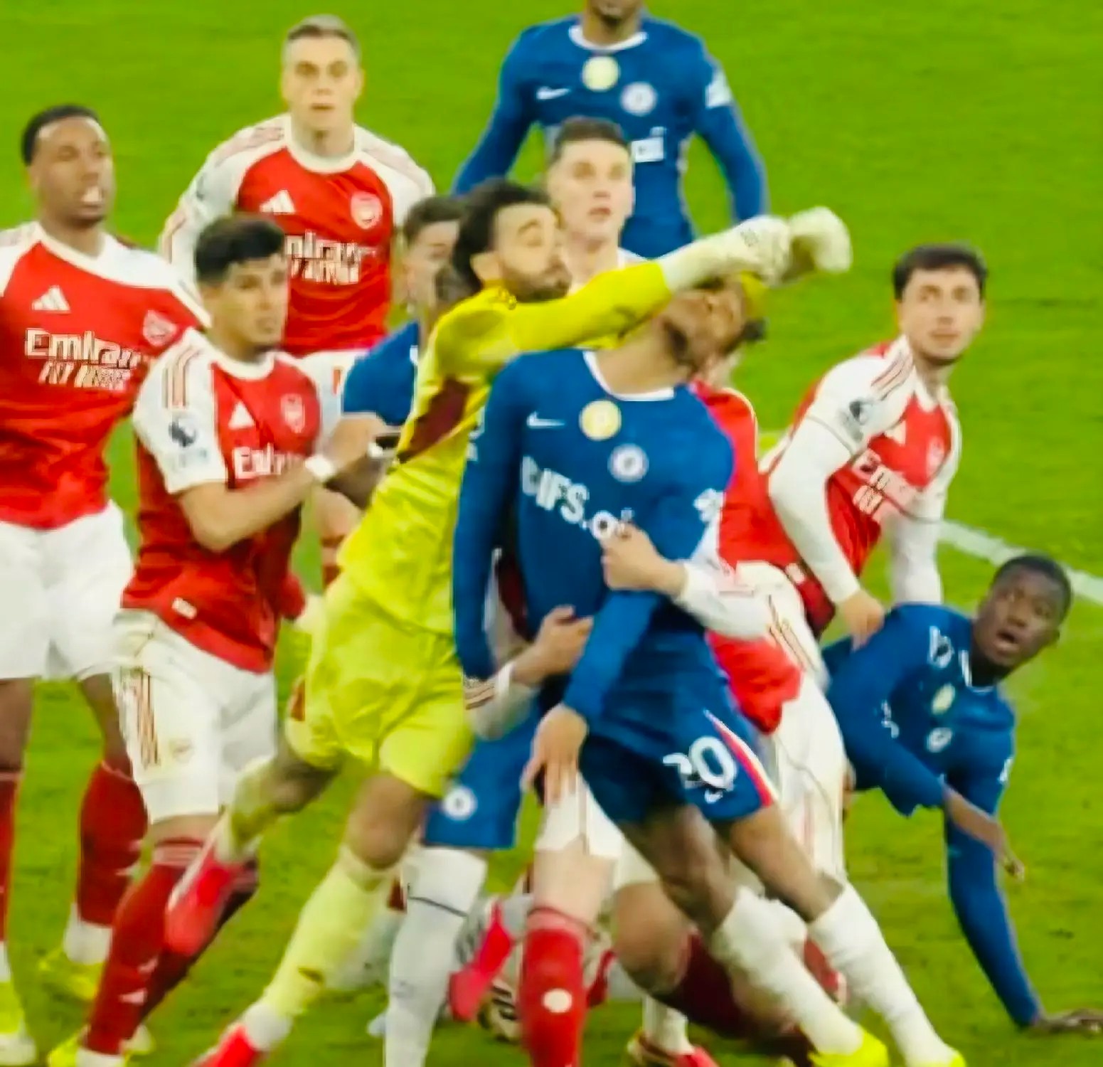 切尔西同样靠角球混战破门。