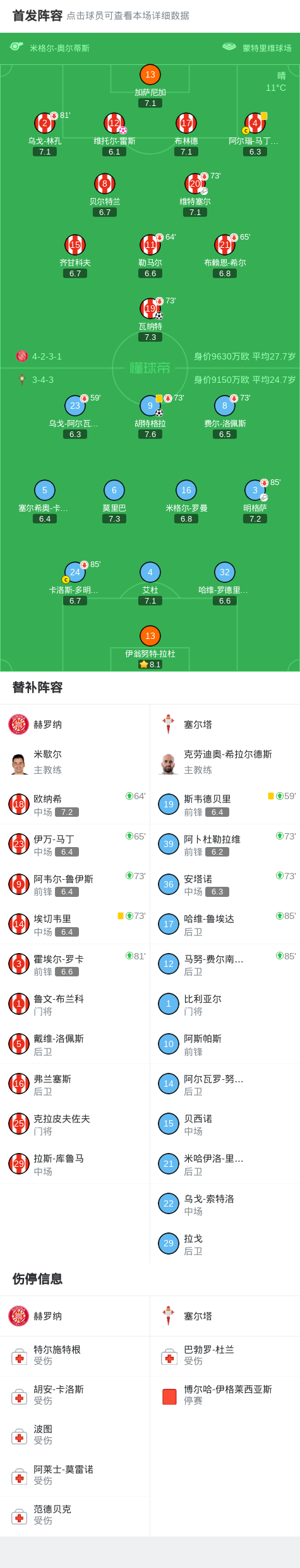 第58分钟,塞尔塔球员明格萨助攻胡特格拉打入一球。