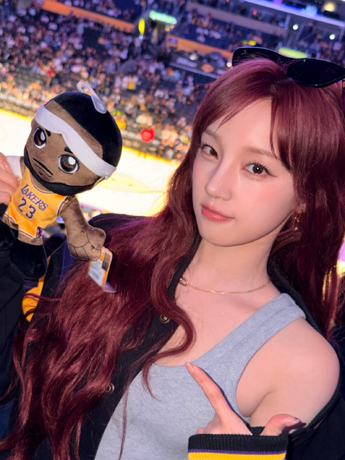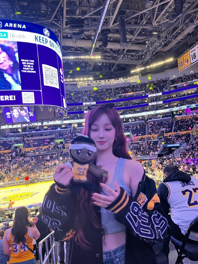 此外,宋雨琦还穿上了湖人队的应援外套,戴上墨镜,十分帅气。