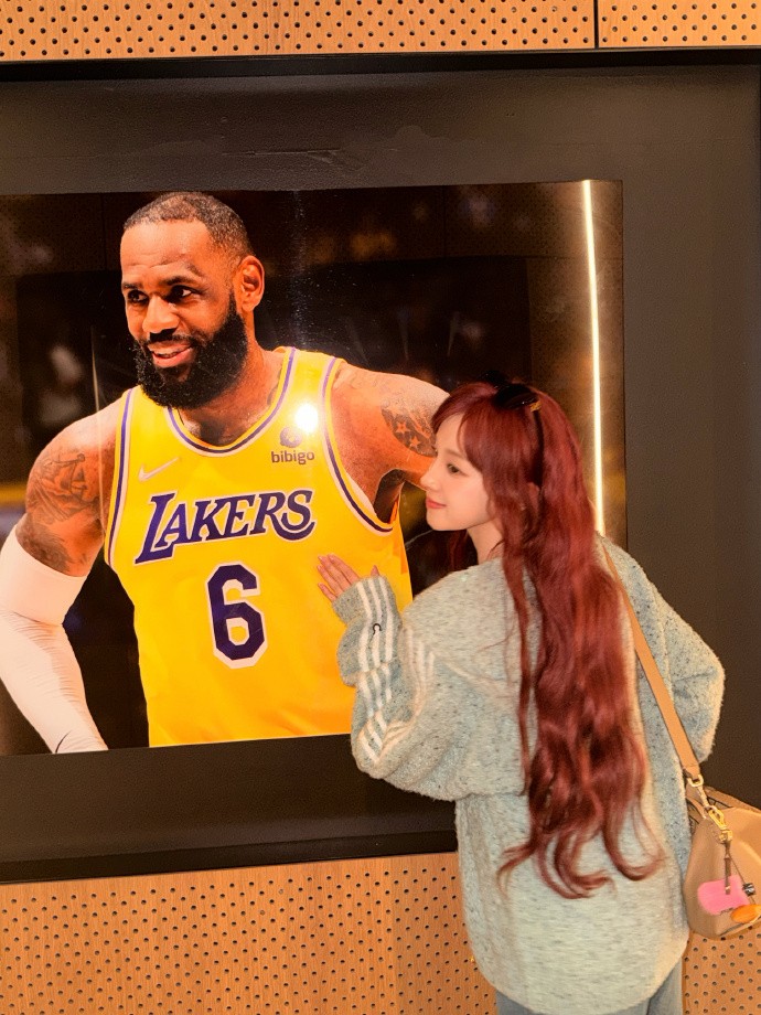 3月2日,国内知名女子偶像宋雨琦前往洛杉矶湖人队的主场,为湖人队加油,为自己的偶像詹姆斯助威。