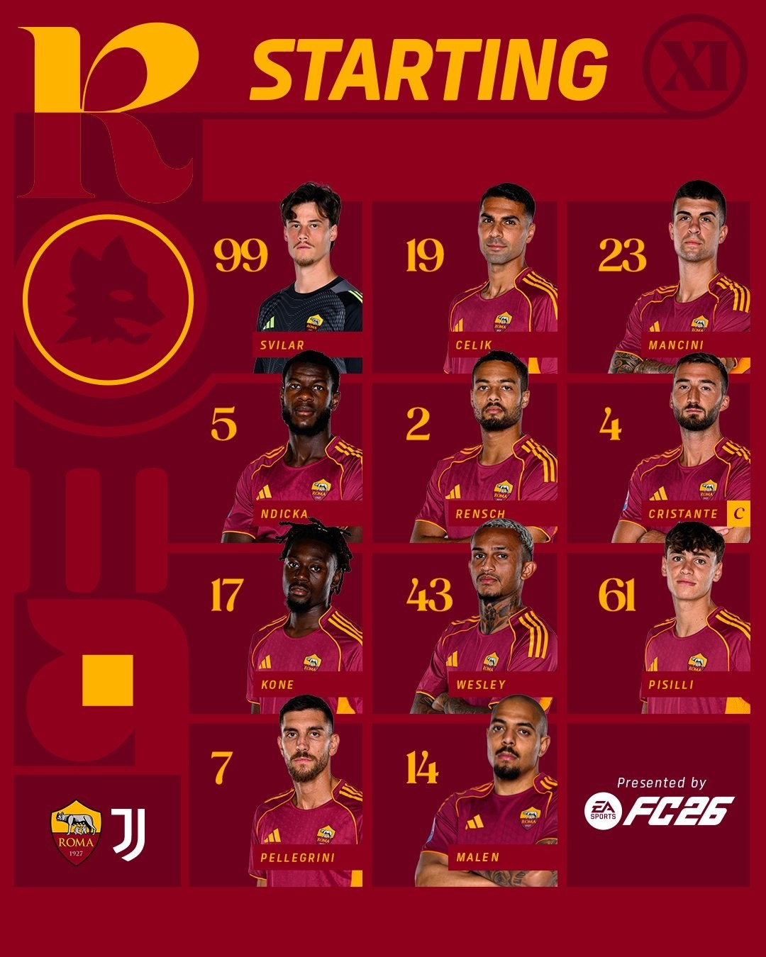 北京时间3月2日凌晨3点45分,意甲联赛第27轮展开一场焦点战役,罗马对阵尤文。赛前,双方公布首发阵容。