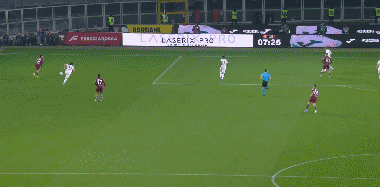 第53分钟,都灵左路起球,萨帕塔头槌破门,都灵2-0拉齐奥