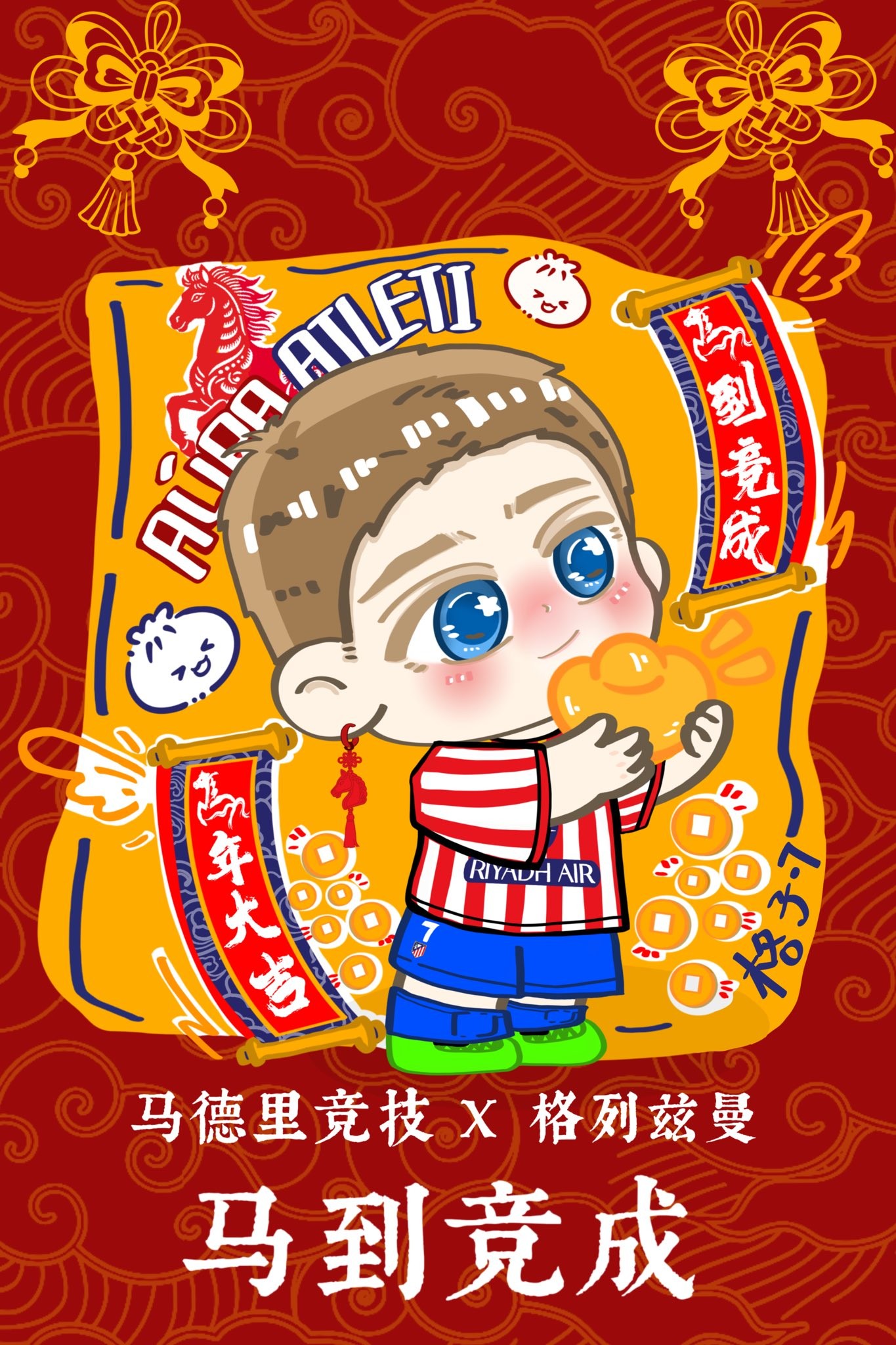 马竞官方在社交媒体上晒出了6张卡通海报庆祝元宵节,每一张上面都是中文,并配文:“马到成功开竞运,元宵佳节共此时。祝各位朋友马年大吉,元宵快乐!”