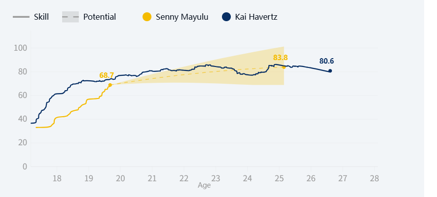 马尤卢的“多才多艺”和哈弗茨其实有相似之处,他也像极了一个矮了10公分,没有头球但是更灵活的哈弗茨,是阿尔特塔的菜。