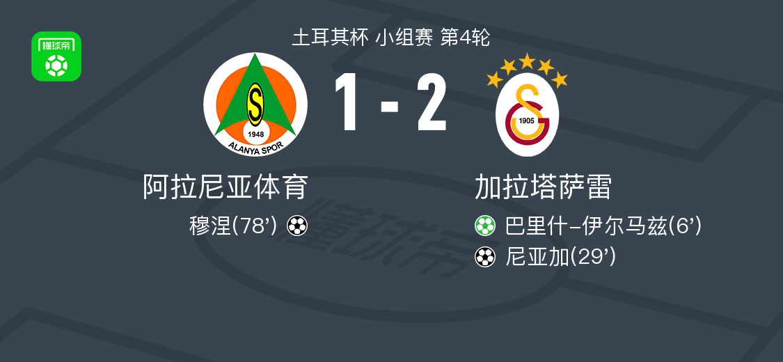 北京时间3月4日土耳其杯 小组赛 第4轮,阿拉尼亚体育对阵加拉塔萨雷。阿拉尼亚体育穆涅破门。加拉塔萨雷巴里什-伊尔马兹破门,尼亚加破门。最终比分阿拉尼亚体育 12 加拉塔萨雷。