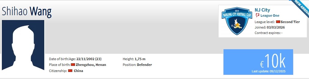 北京时间3月4日,德转更新,黄威、奚安杰、王世豪加盟南京城市。