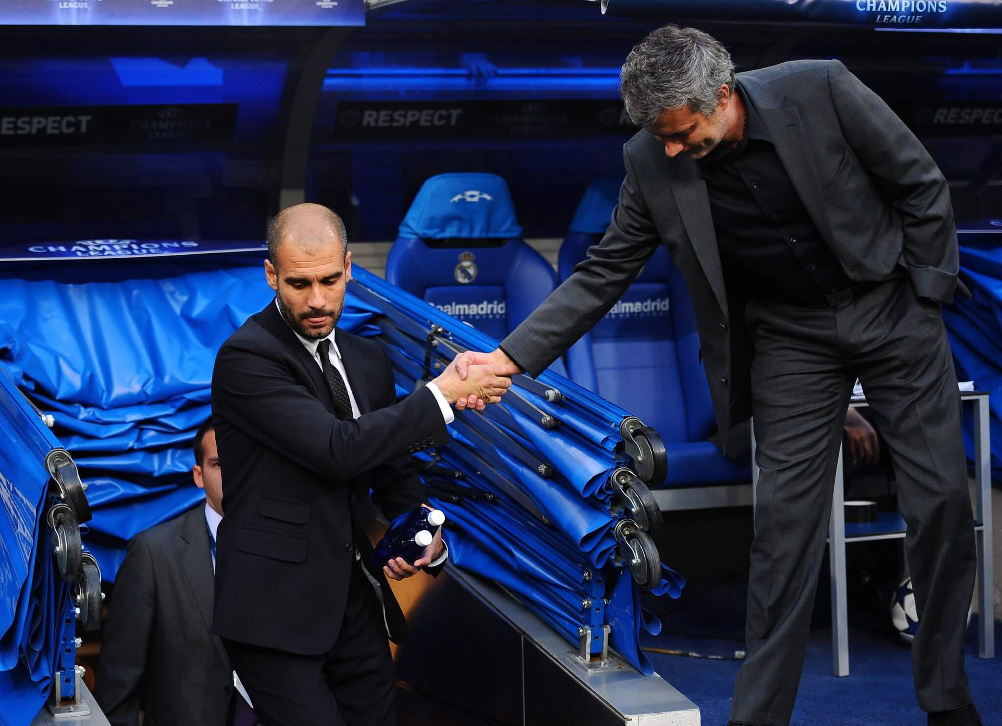 在4月27日两队欧冠半决赛首回合比赛前,穆里尼奥曾讽刺地指责,瓜迪奥拉总是批评那些“做出正确判罚”的裁判。当天晚些时候,瓜迪奥拉在伯纳乌的新闻发布会上回应道:“穆里尼奥才是这里的老大,他是世界上最聪明的人,我们曾在巴塞罗那共事四年,彼此非常了解。“