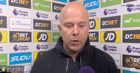英超第29轮,利物浦客场1-2不敌狼队,利物浦主帅斯洛特赛后接受了拜因体育的采访。