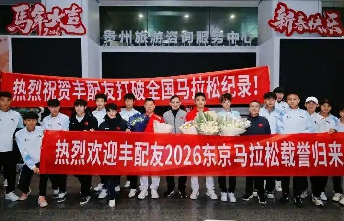 3月4日,据新浪跑步报道,马拉松全国纪录保持者丰配友载誉归黔,相关领导及省体工大队相关负责人,以及丰配友的家属、亲友代表来到机场迎接,为他送上鲜花与诚挚祝贺,共享这份属于中国马拉松的荣耀。